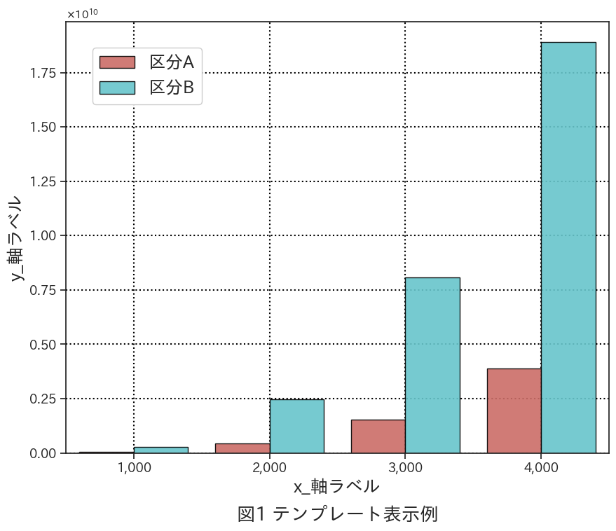 ax1.set_title("図1 テンプレート表示例", fontsize=19, loc="center", y=-.17)| 設定項目例 | 設定例 | 説明 |