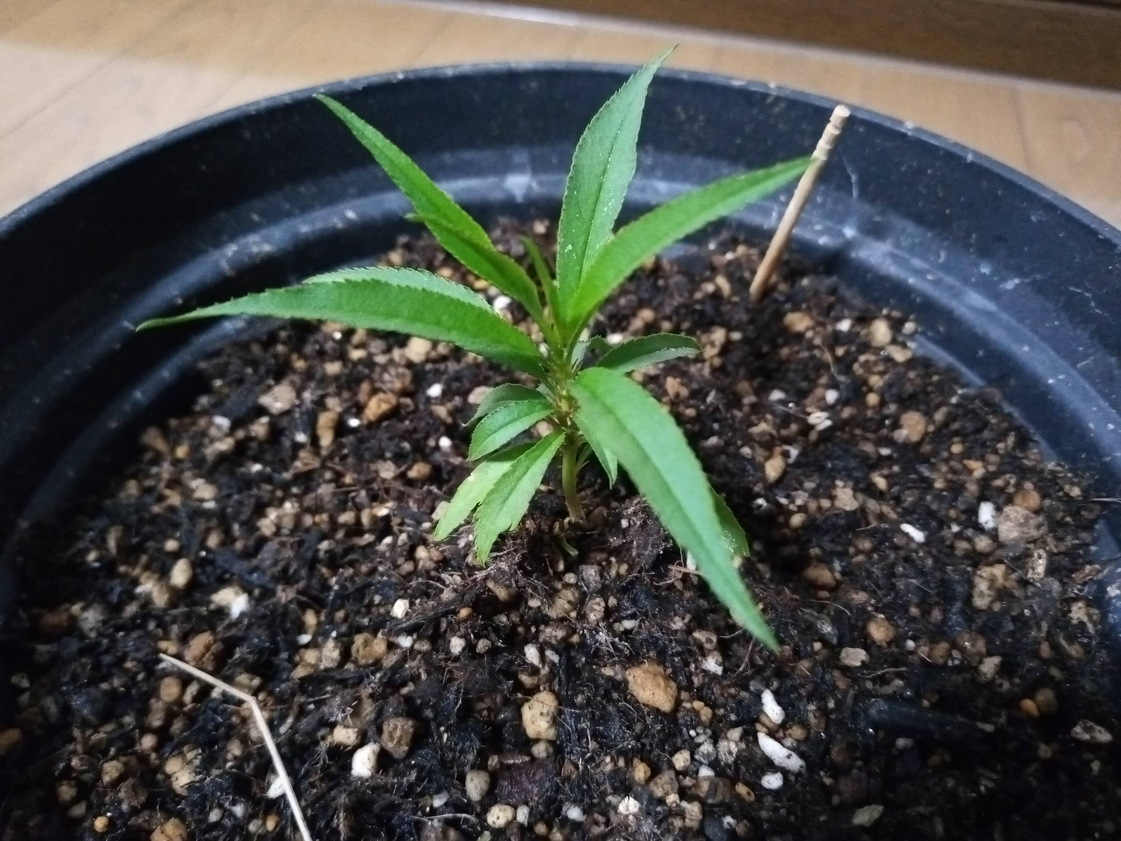 前回までの発芽したばかりに比べて、葉の数が増えて縁にギザギザがついて、貫禄が出てきたように思います。