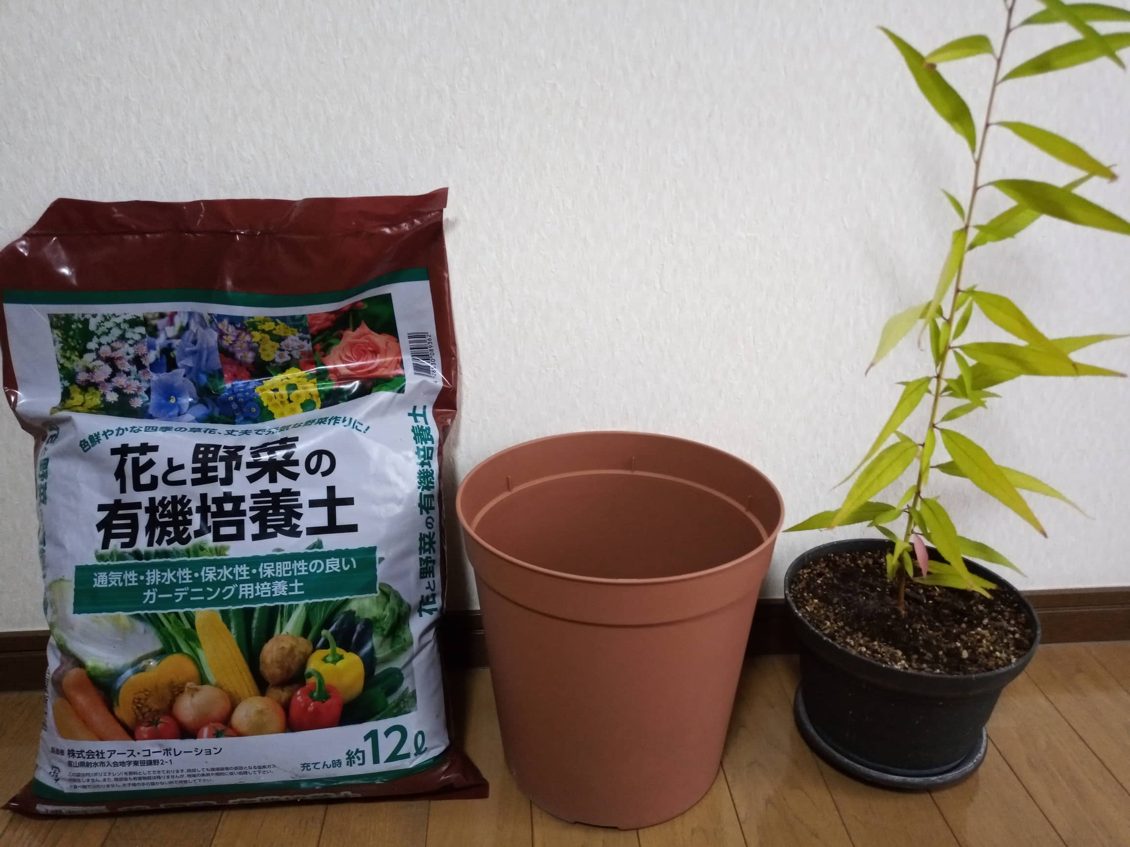 植物自体の大きさに対して、鉢も小さくなりましたし、少し大きな鉢で土の量を増やした方が、水分も養分も保持する力が大きく管理もしやすいと思うので植え替えをすることにしました。