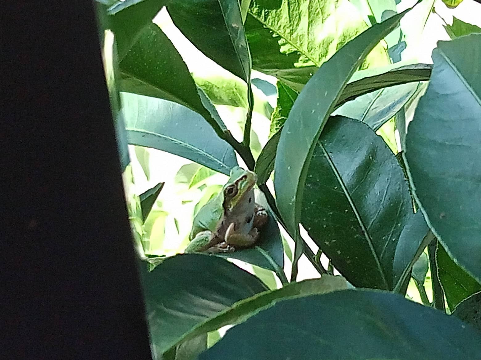 7月下旬から8月の真夏日には、カエルが干からびまいと日陰を求めてやって来るくらいには、日光が入りません( 一一)