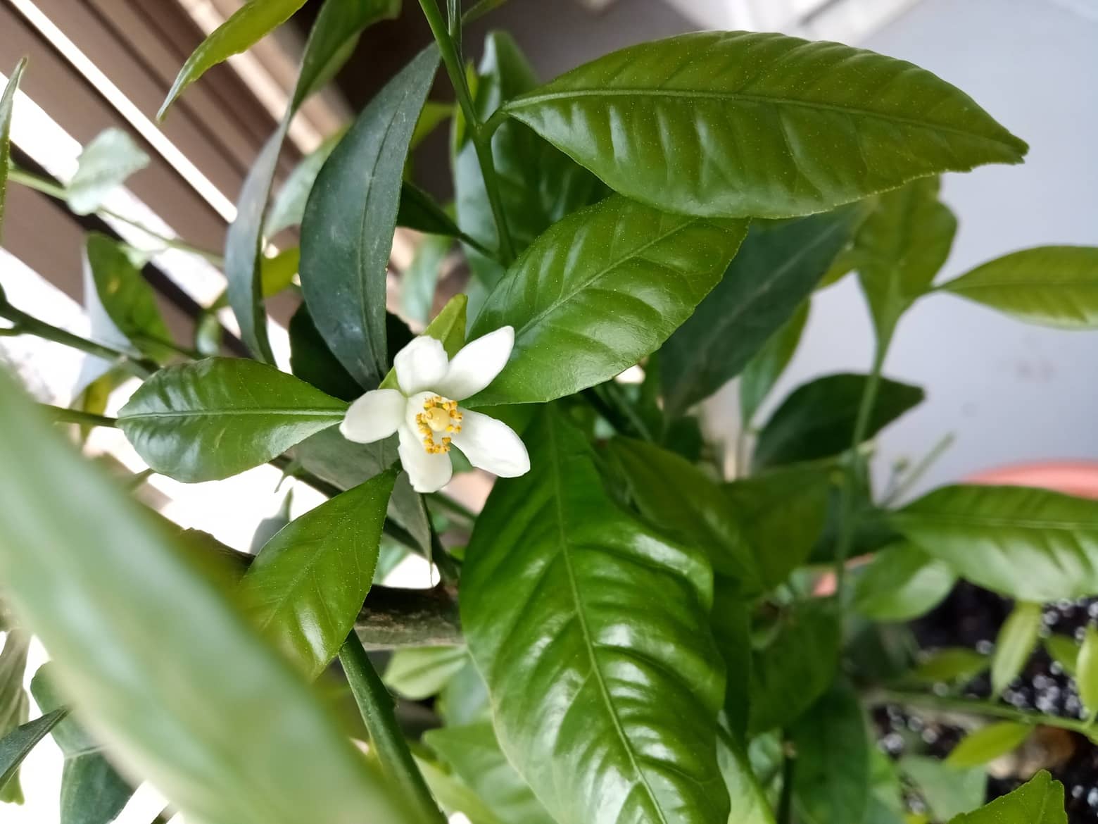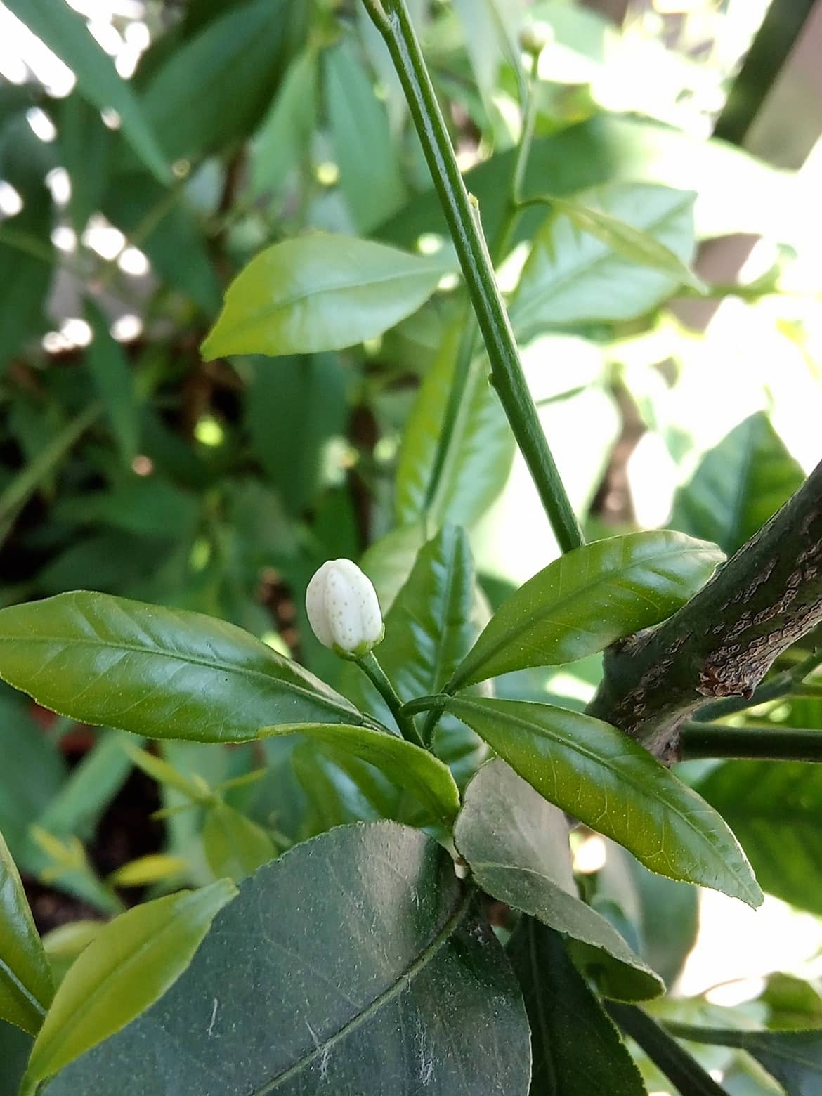 苗木を購入して室内で一冬越した後、5月上旬頃にはみかんの花のつぼみが見え始め、白い小さな花が咲き始めました。