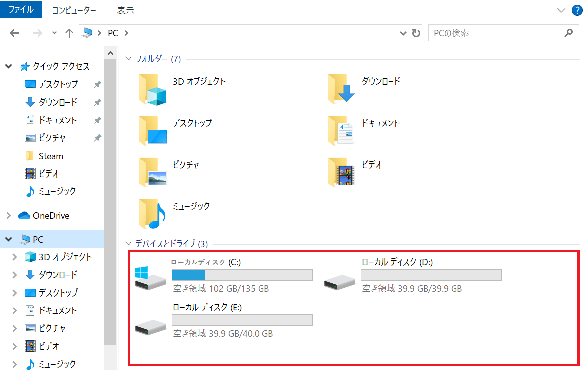 今回の場合だと、Cドライブがデフォルトのドライブとして登録されていたので、DドライブとEドライブを追加しました。