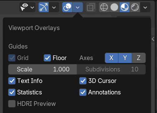 3D View画面中の「Overlays」(上画像)「Statistics」のチェックマークを有効にする(必須ではない)
