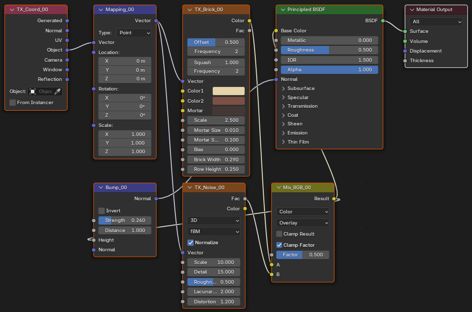 BlenderでGUI操作によって構築したノードツリーも、bpyを通じてスクリプトとして完全再現可能です。 これにより、マテリアル設定をテンプレート化し、「共通マテリアルライブラリ」として扱うことができます。